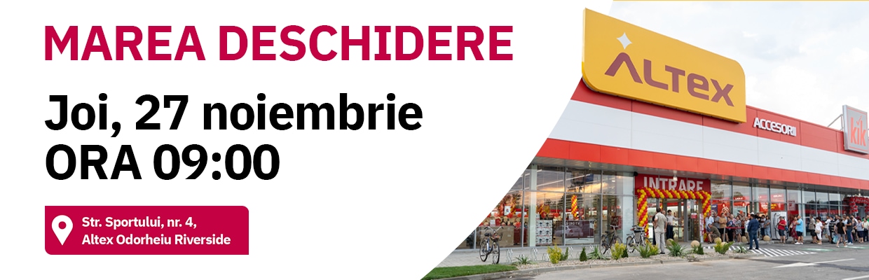 Pe 27 noiembrie sarbatorim impreuna deschiderea magazinului Altex Odorheiu Riverside! Incepand cu ora 09:00, te asteptam cu super oferte si multe alte surprize!