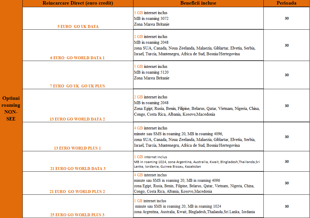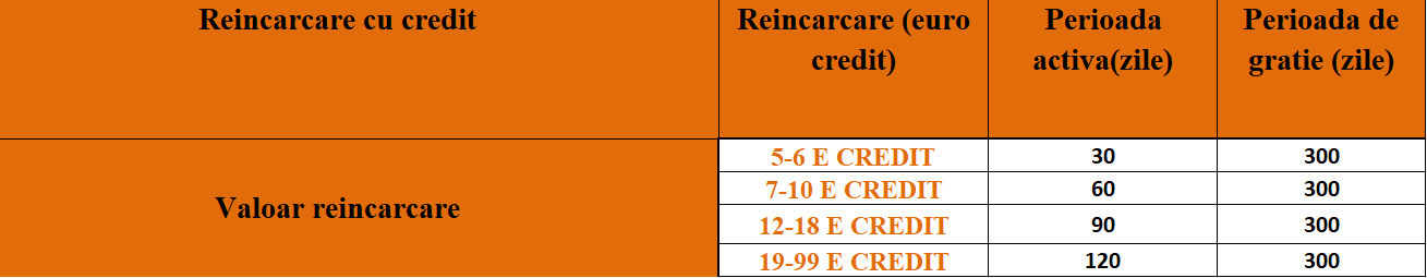 - 300 GB pentru optiunile de 12/16€ credit (voce sau internet)